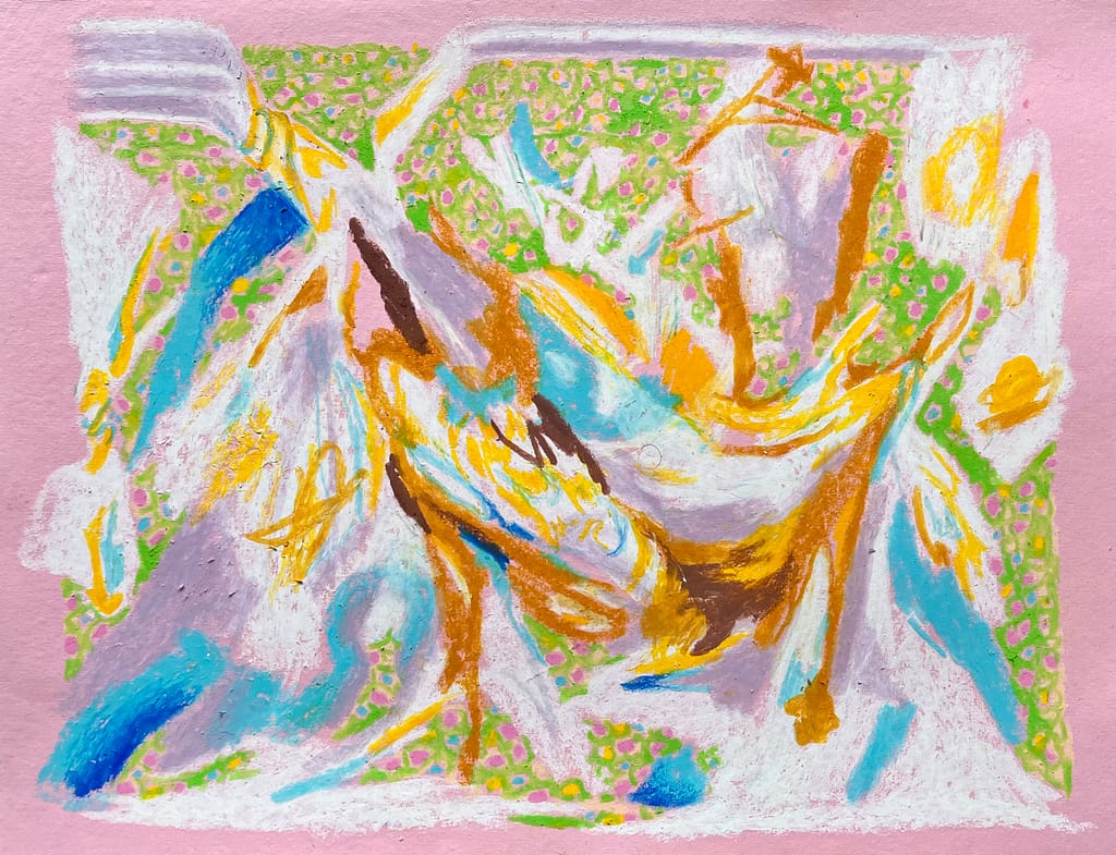 Vas. Enjoying the Countryside , 2022, öljypastelli, 35×45