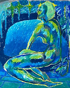 Vas. The Bluest Day 2023, öljypastelli kartongille, 45×36