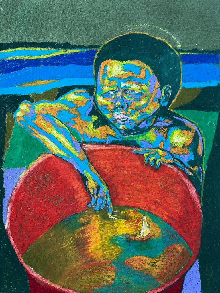Vas. Dirty Water, 2022, öljypastelli, 45×35